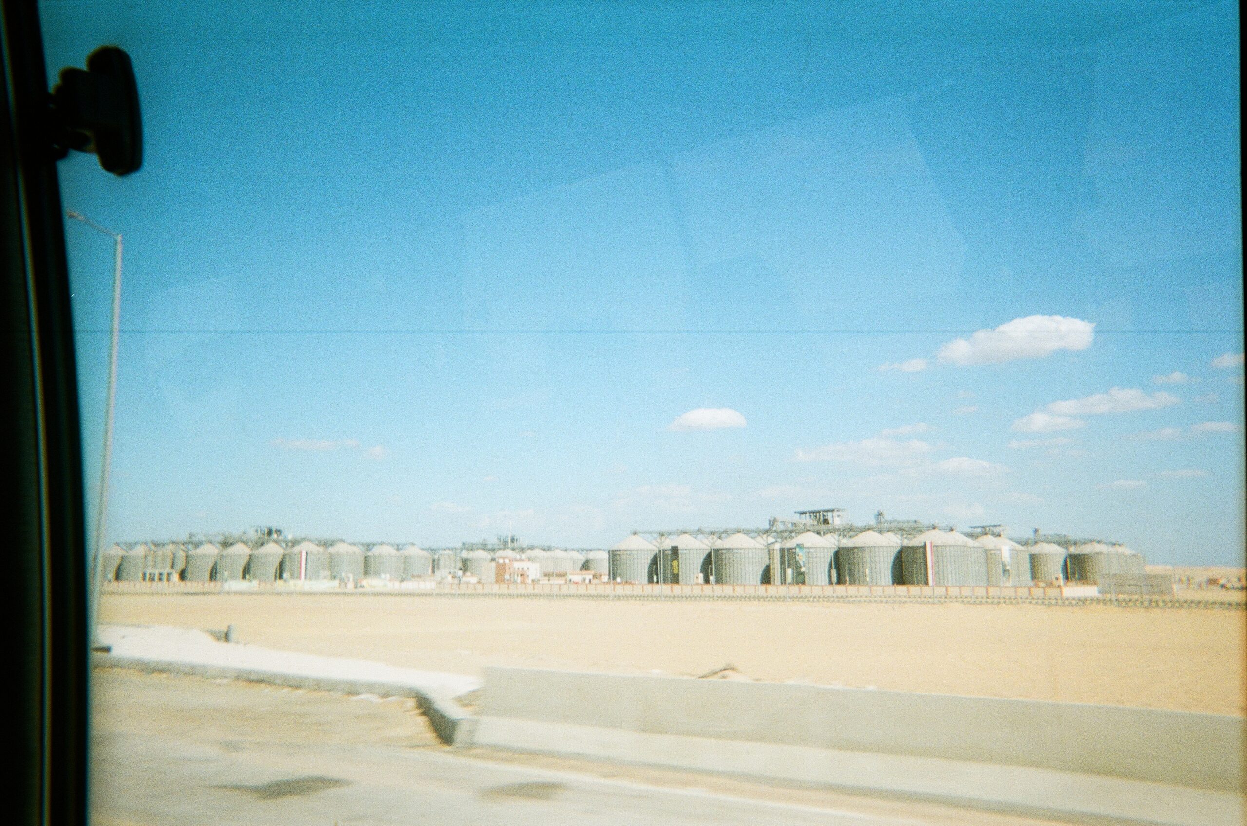 The stated aims of the New Delta mega project are to reclaim desert land for agriculture, improve food security and create new communities outside the densely populated Nile Valley. While one can identify this infrastructure from satellite images, access on the ground is limited. We designed & hosted an unofficial tour to explore the ground truth and discover what was publicly visible and accessible. Leaving Cairo heading west we spotted greenhouses, pivot irrigation fields, grain silos and other agricultural projects along the highway.